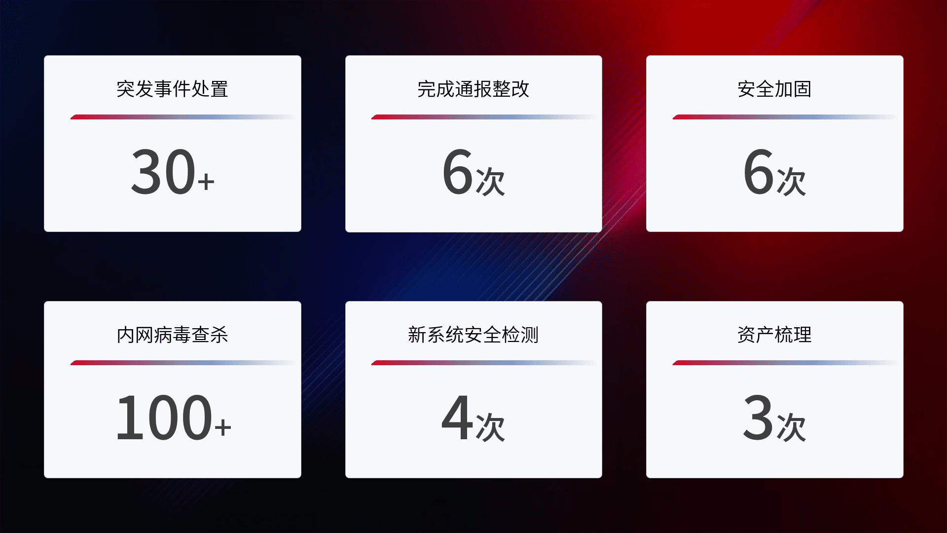 网络安全加固与风险管理:通过技术加固手段,,,如加强区域隔离,,缩减攻击内网横向移动的范围;优化现有网络安全管理制度,,降低网络威胁暴露面,,,减少被黑客攻击的可能性。。